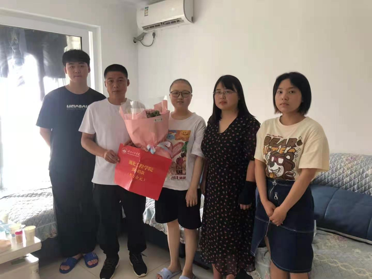 7月6日,我院党委副书记艾娜、辅导员老师唐霄和教师代表张金金前往河北廊坊看望身体患病学生李婉娴。