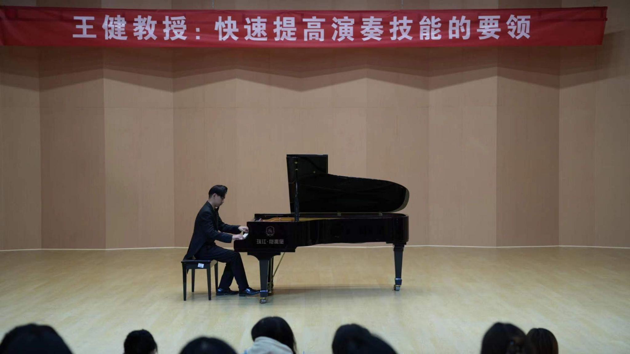 课上,王健教授以4位同学的演奏作品为例,生动地阐述了演奏钢琴作品不仅是完成技巧,还要从作品的文化背景、作曲家所处的时代、音乐的流派风格、层次线条等方面来处理,用理性的思路来分析作品。